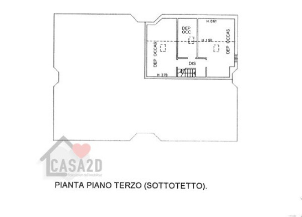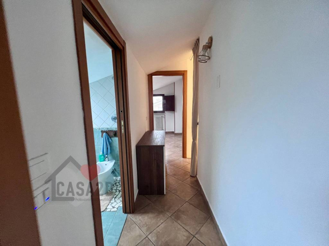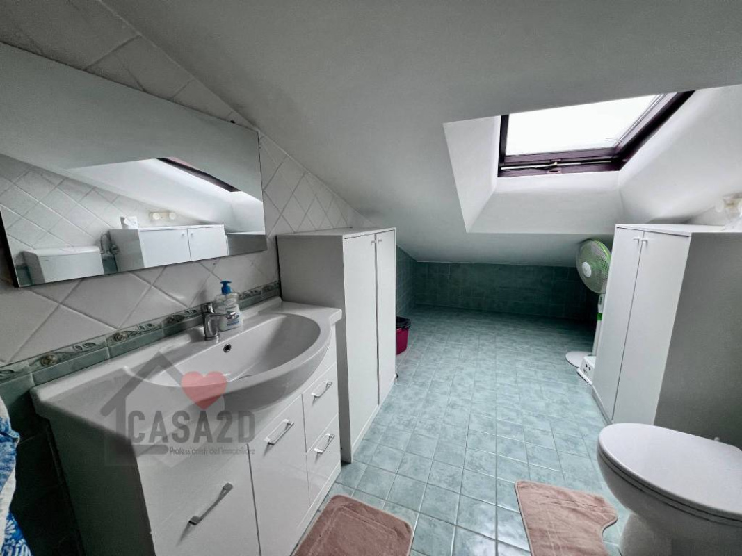 Salendo al piano superiore, nel sottotetto, troviamo un disimpegno e zona servizi attualmente adibita con un bagno e due stanze.