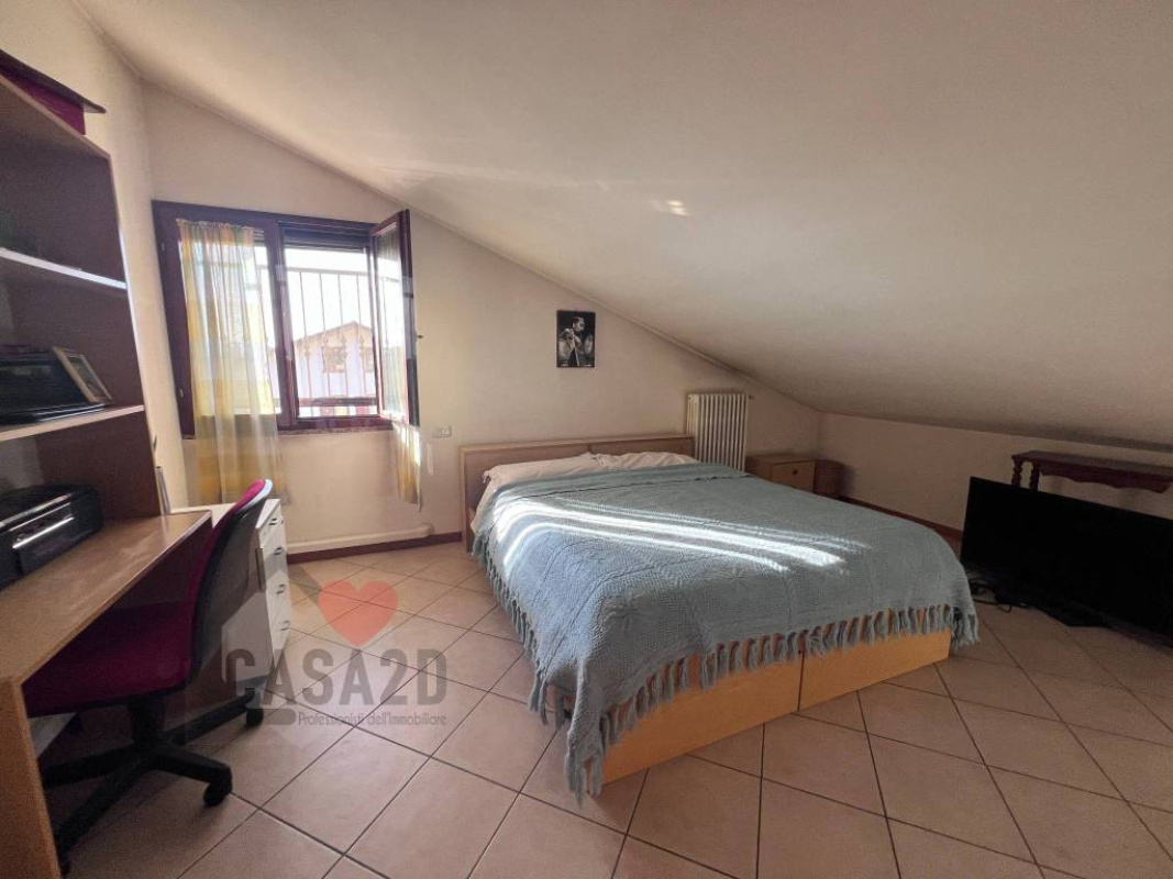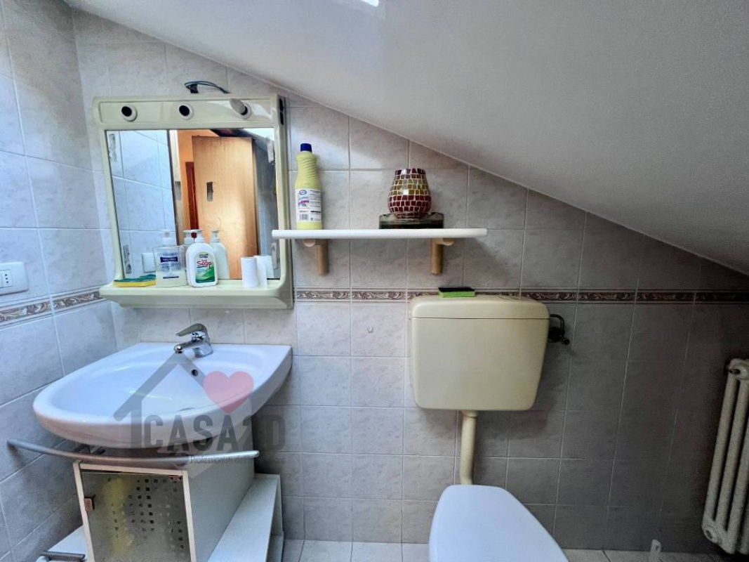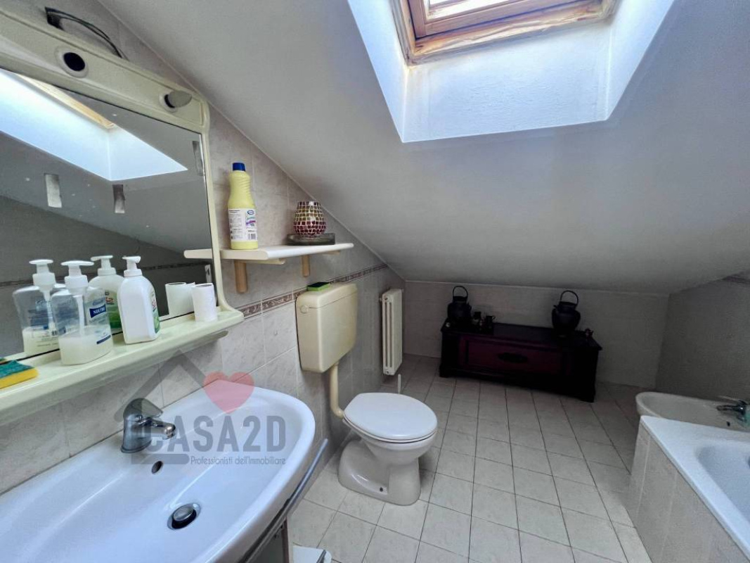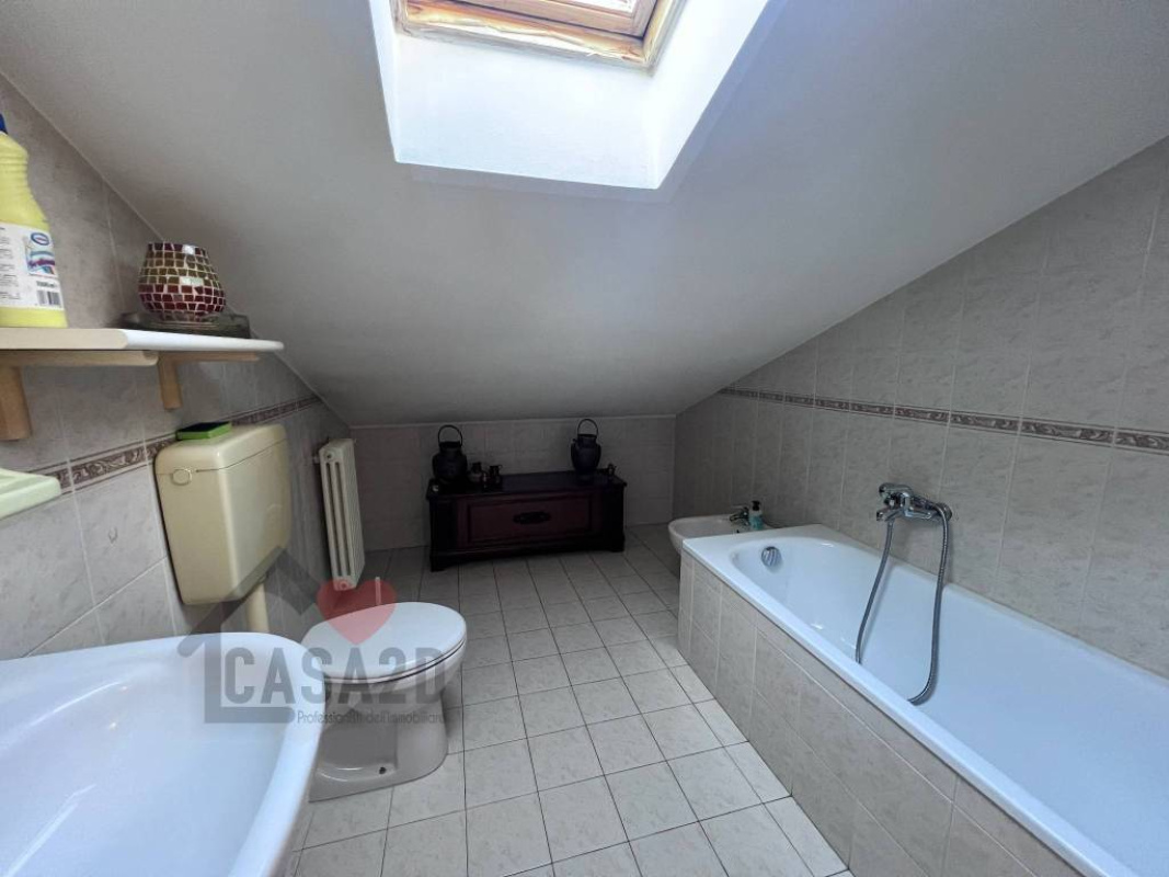 Tramite una scala situata nel soggiorno si accede al piano superiore, dove si trovano due ulteriori ambienti sottotetto e un secondo bagnetto di servizio.