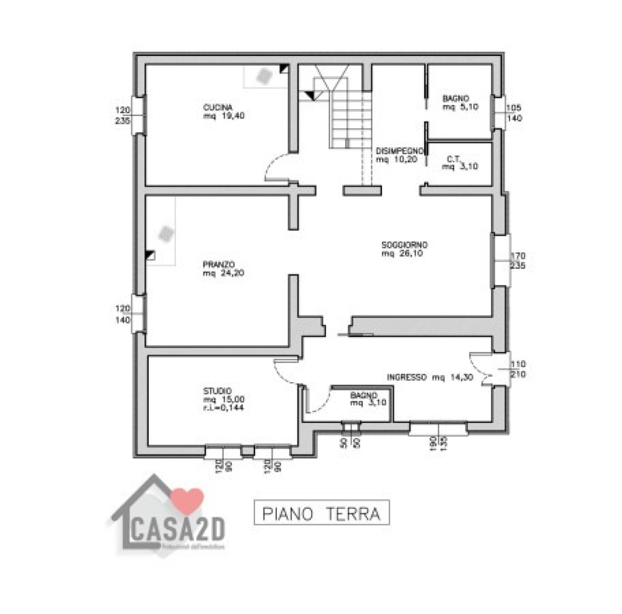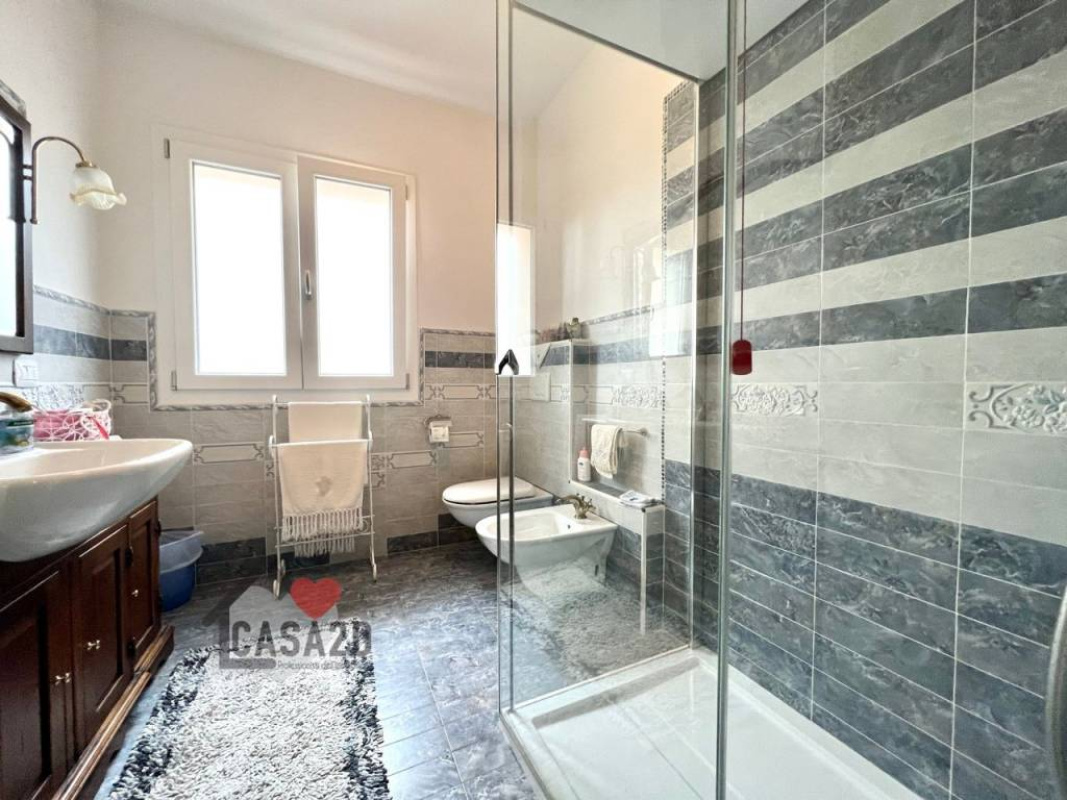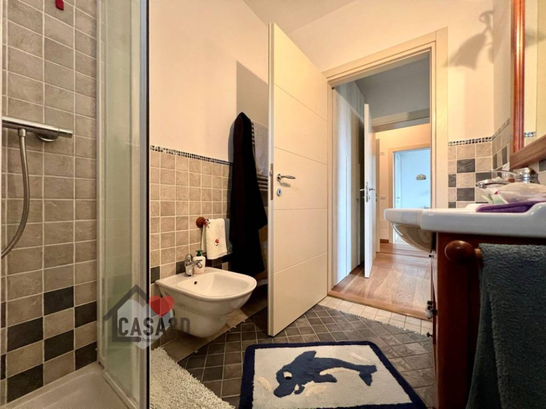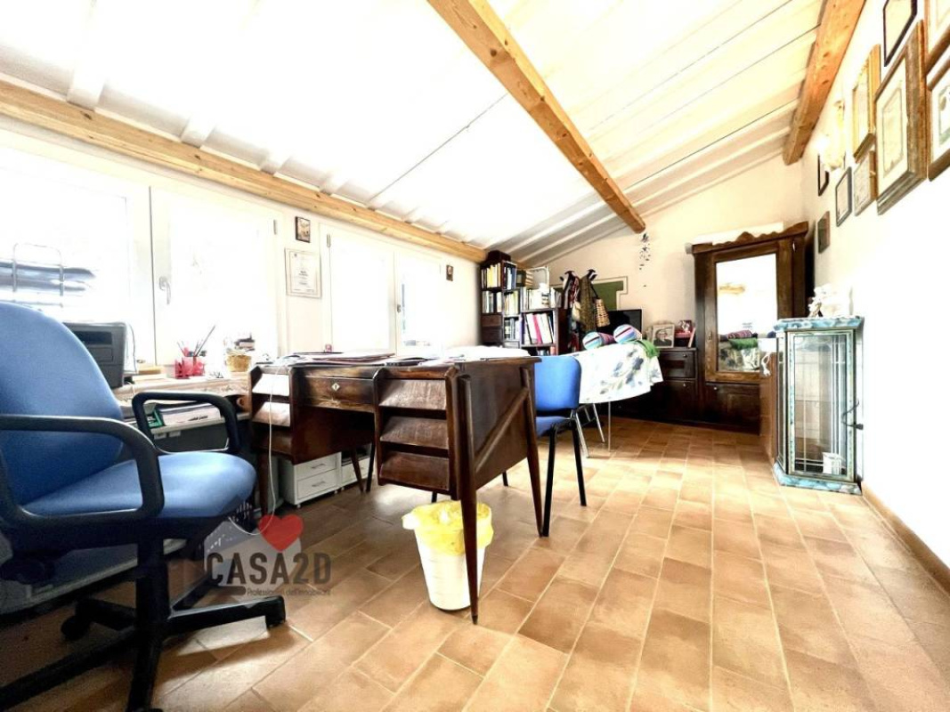 L'ampio soggiorno di circa 26 mq, con finestre che lasciano entrare la luce naturale, adiacente, una spaziosa sala da pranzo di 24 mq, cucina, studio, un secondo bagno e una centrale termica.