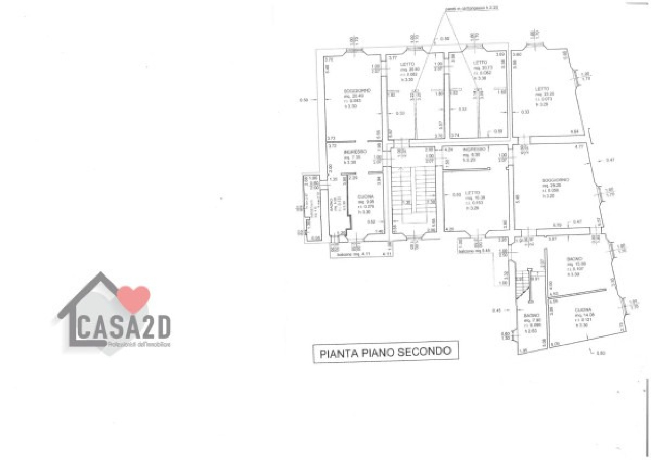 Al secondo piano troviamo gli altri due appartamenti: APPARTAMENTO C, ingresso, soggiorno, cucina, bagno, due camere da letto matrimoniali.