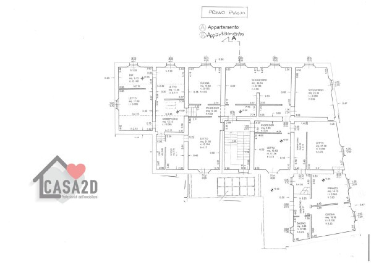 I primi due appartamenti si trovano al primo piano e sono cosi composti: APPARTAMENTO A:Ingresso, due soggiorni, cucina abitabile,tre camere da letto di cui una con guardaroba, bagno e vano caldaia.