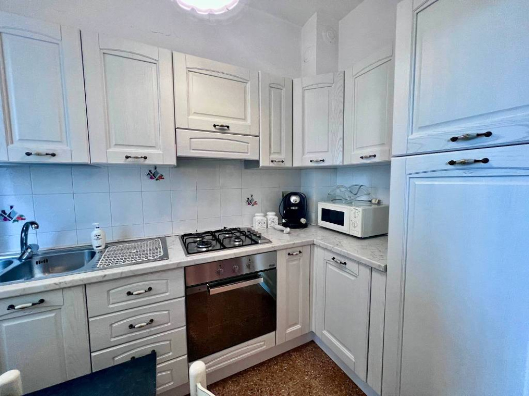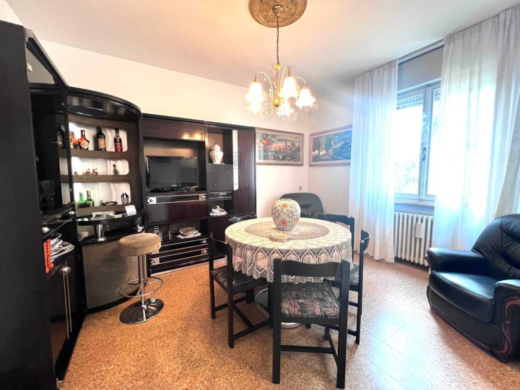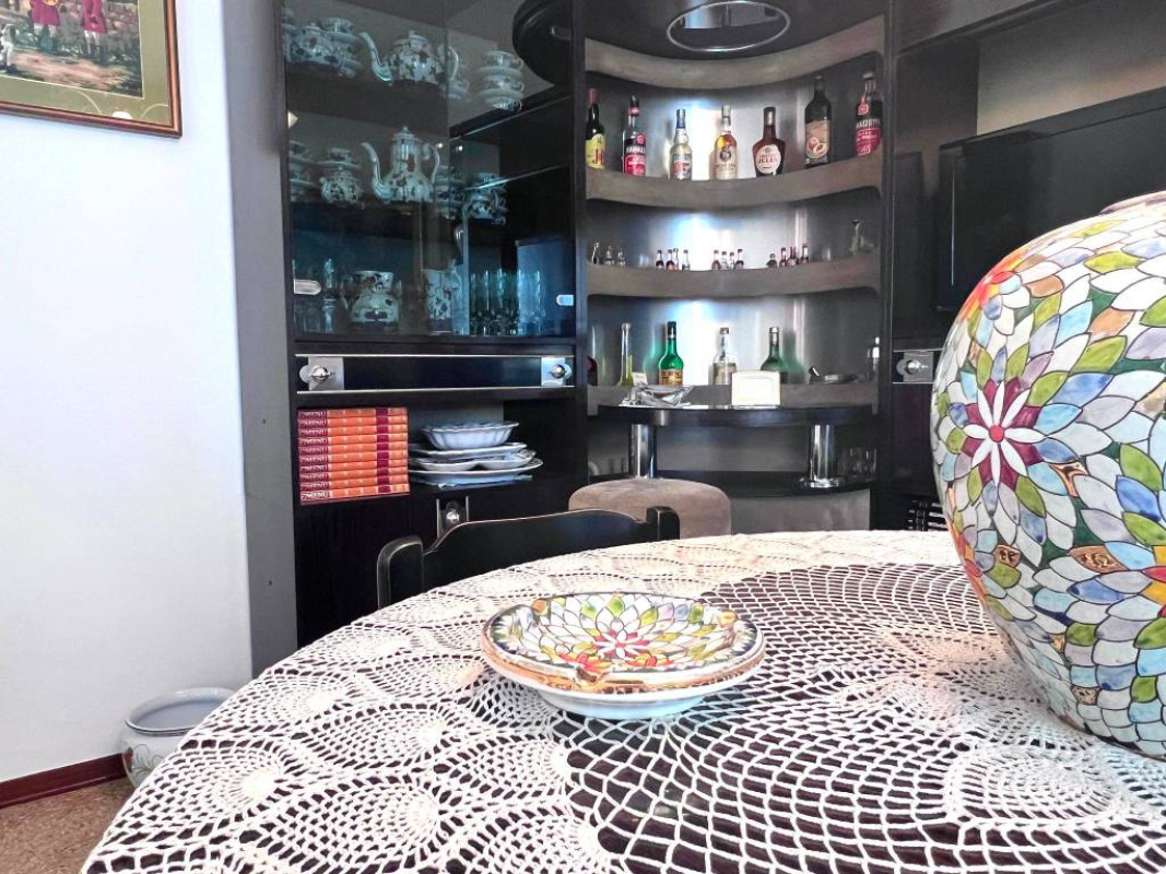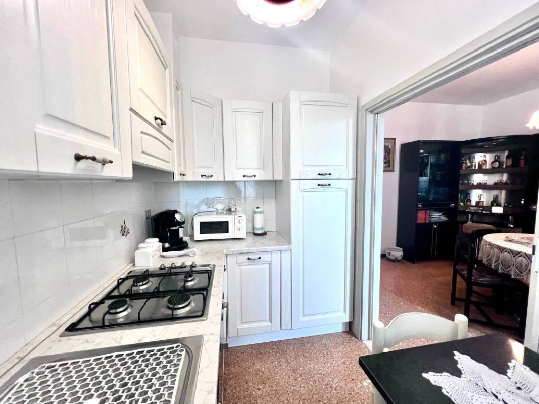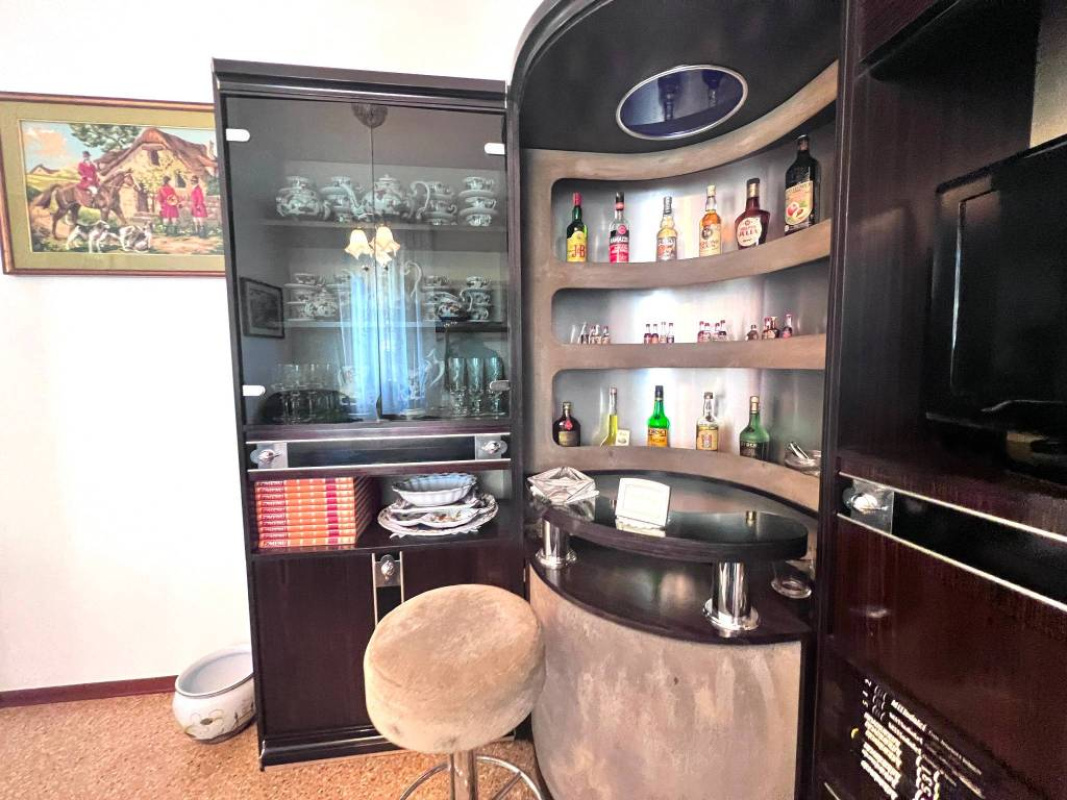L'abitazione si apre su un ingresso che conduce a un grazioso soggiorno arricchito da un funzionale angolo bar, un cucinotto separato e un pratico ripostiglio.