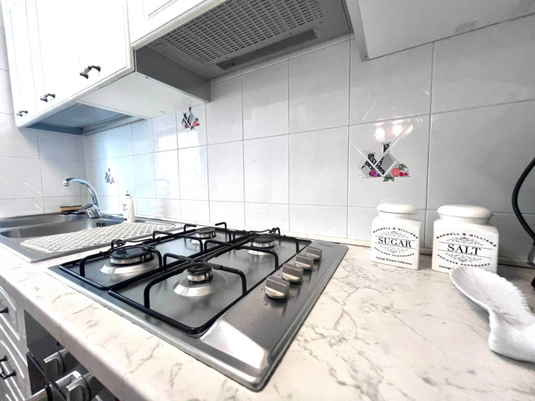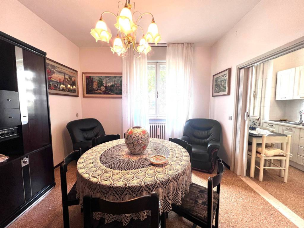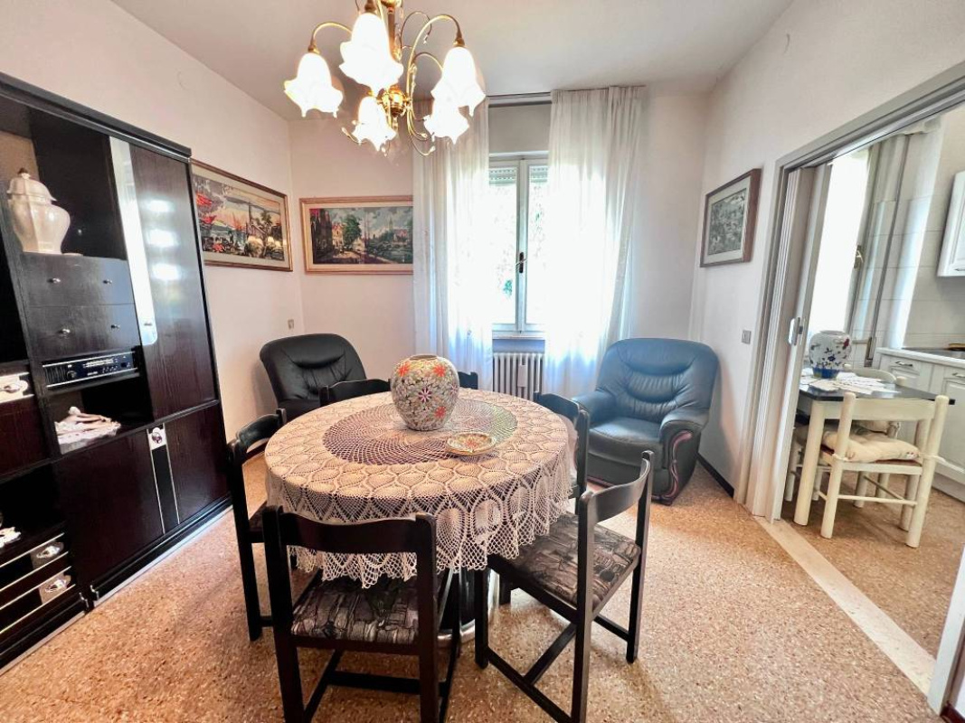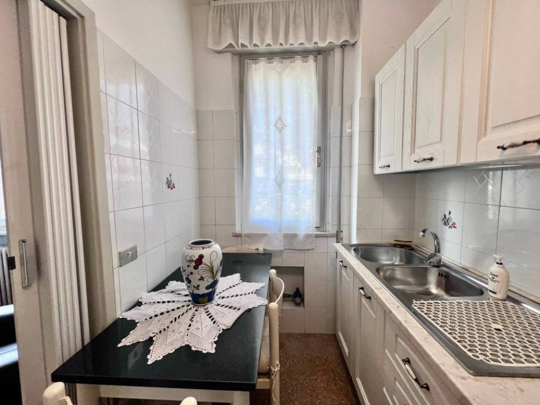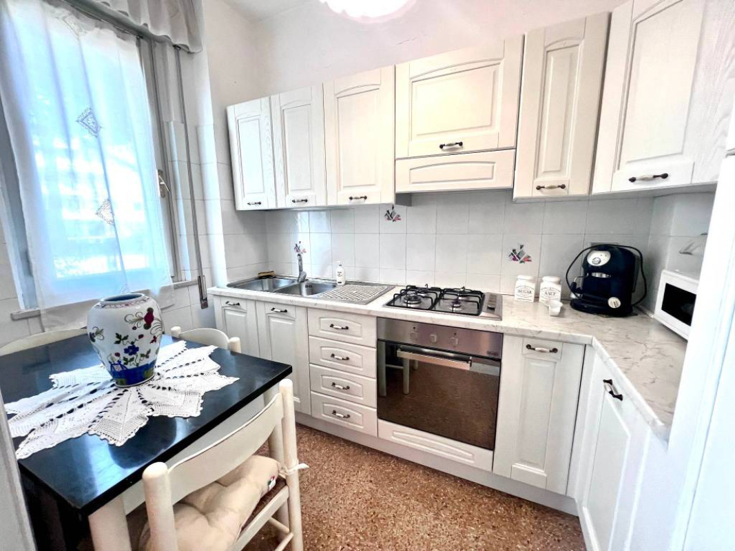 L'abitazione si apre su un ingresso che conduce a un grazioso soggiorno arricchito da un funzionale angolo bar, un cucinotto separato e un pratico ripostiglio.