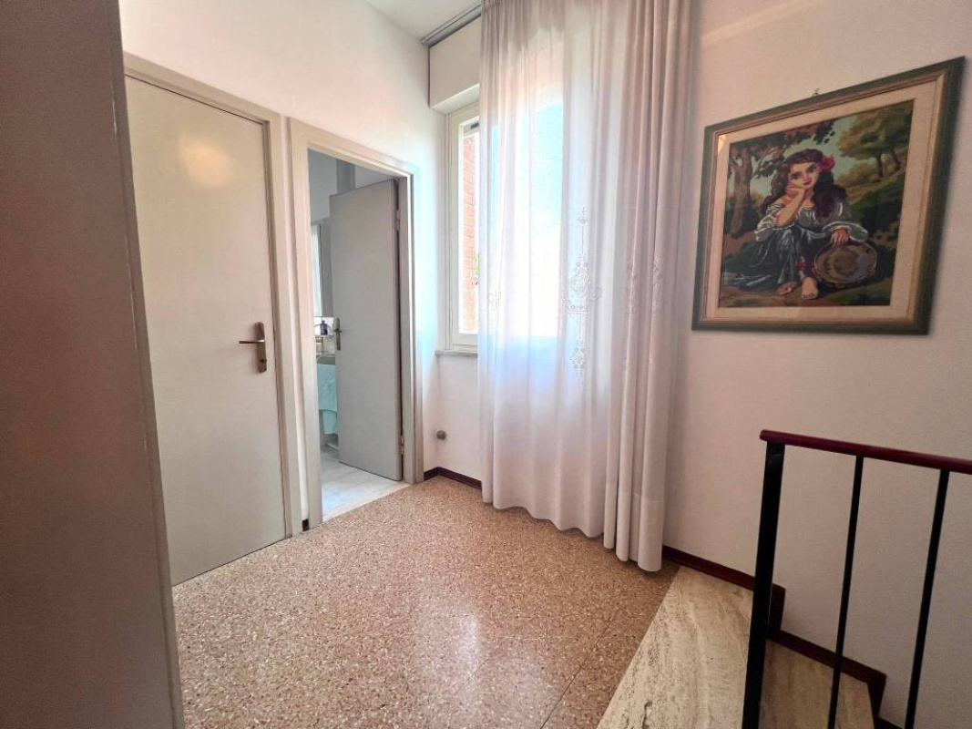 La proprietà comprende diverse pertinenze: al piano terra troviamo un garage con accesso diretto dall'interno dell'immobile, mentre in un corpo distaccato adiacente sono presenti un secondo garage e un ripostiglio ad uso lavanderia.