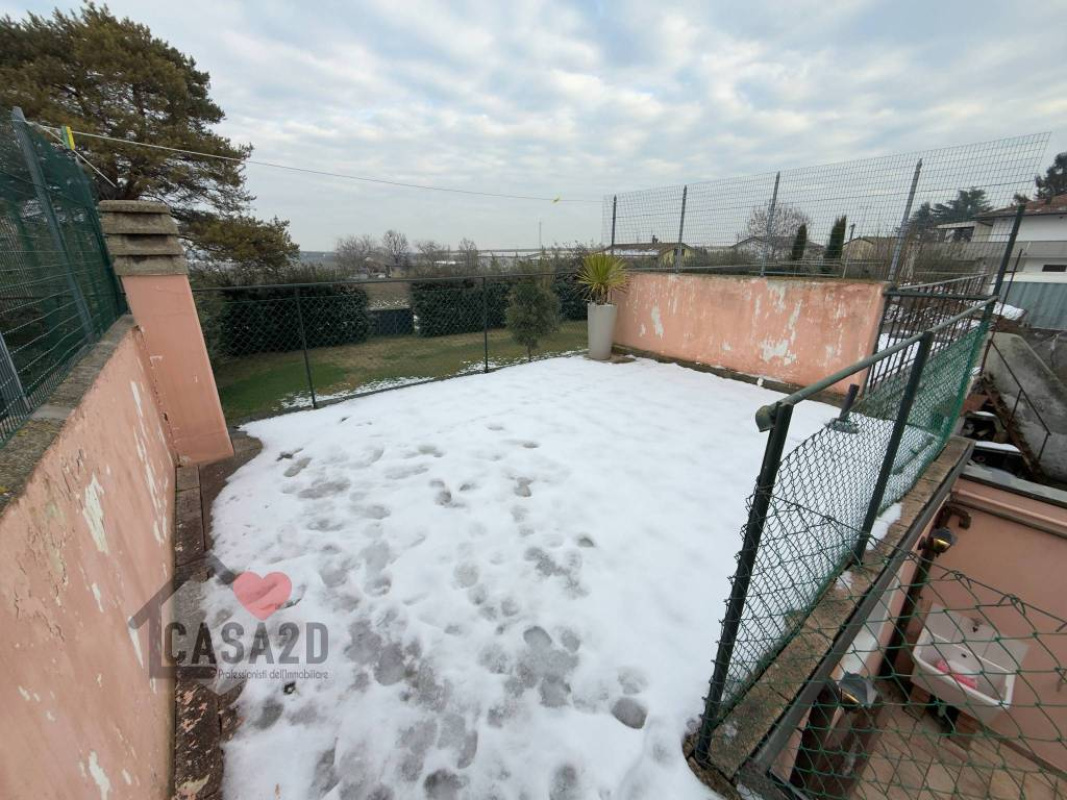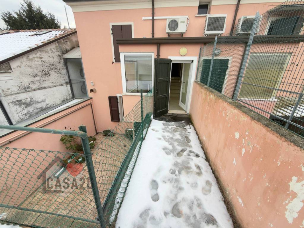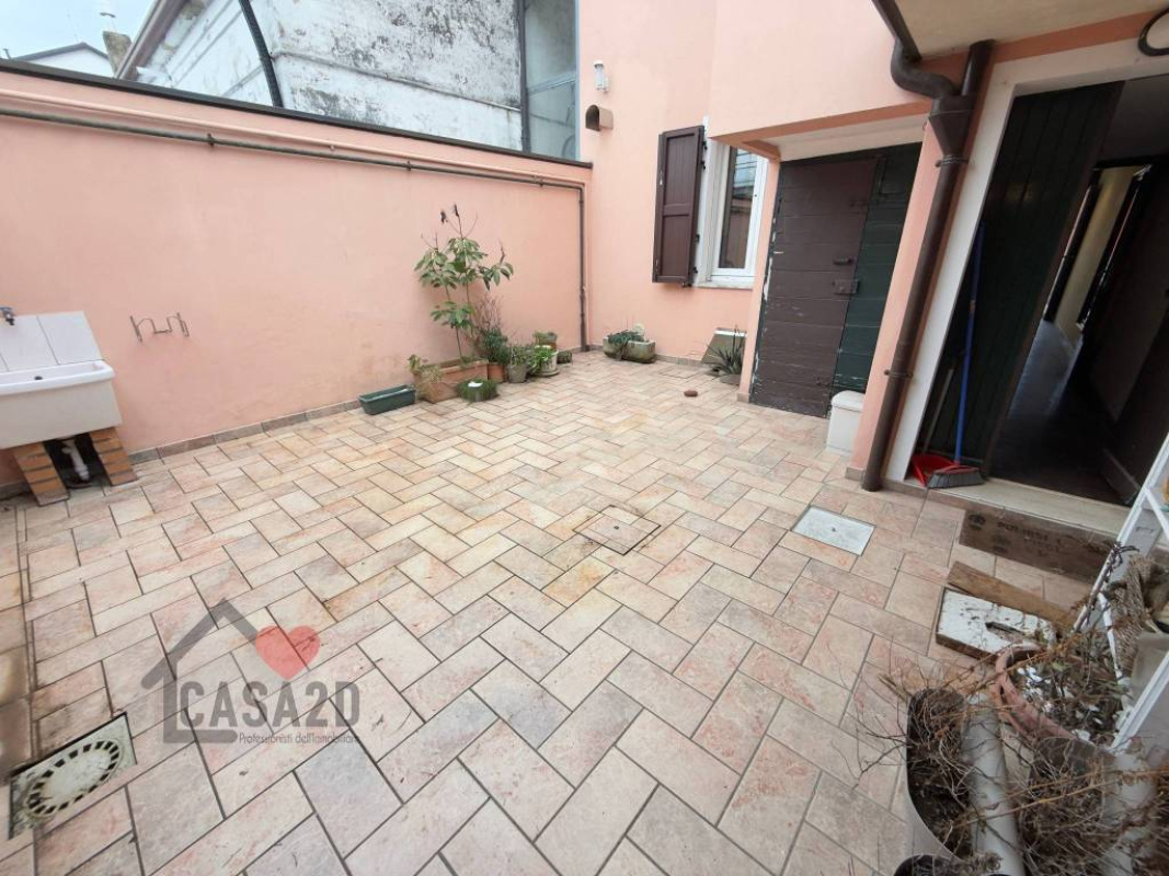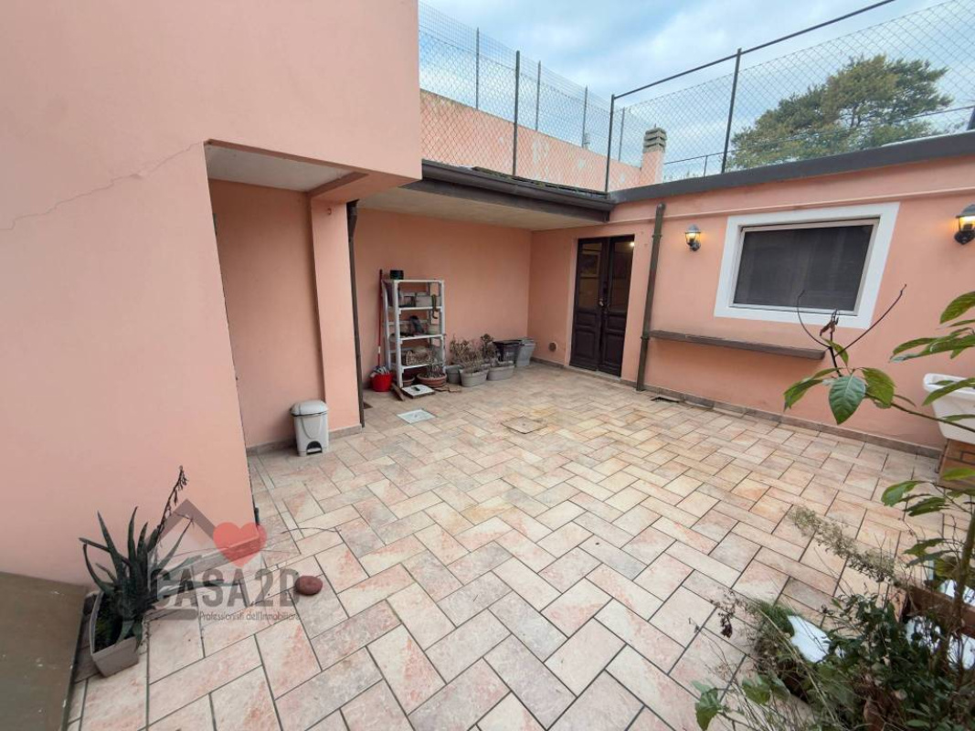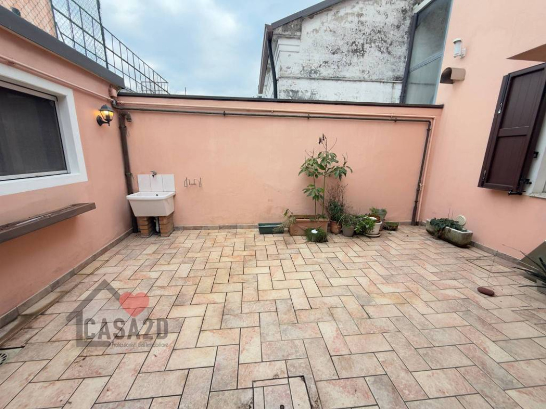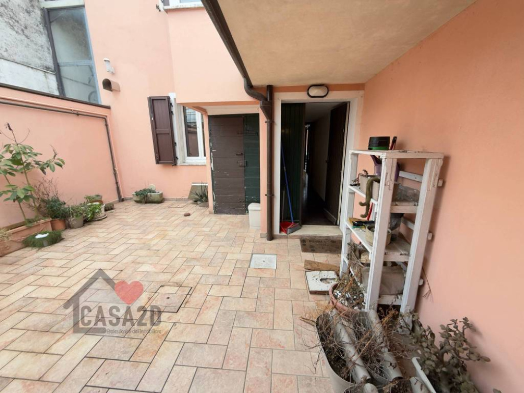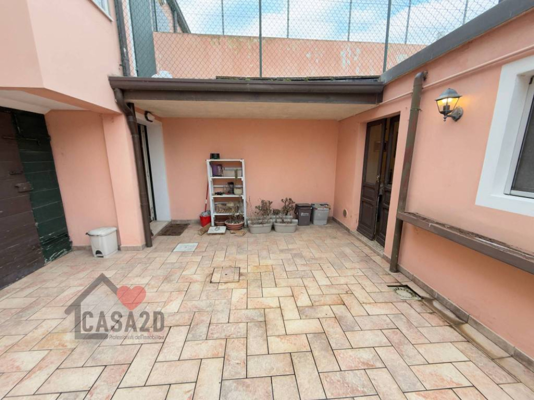 Un comodo disimpegno permette l’uscita su una corte privata pavimentata, ideale per pranzi e cene all’aperto, godendo della tranquillità della zona.