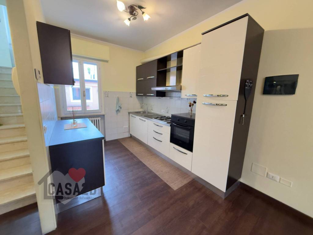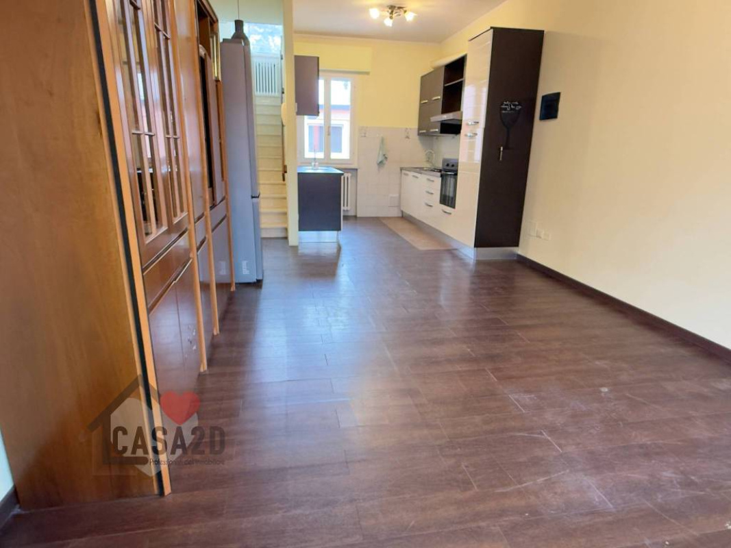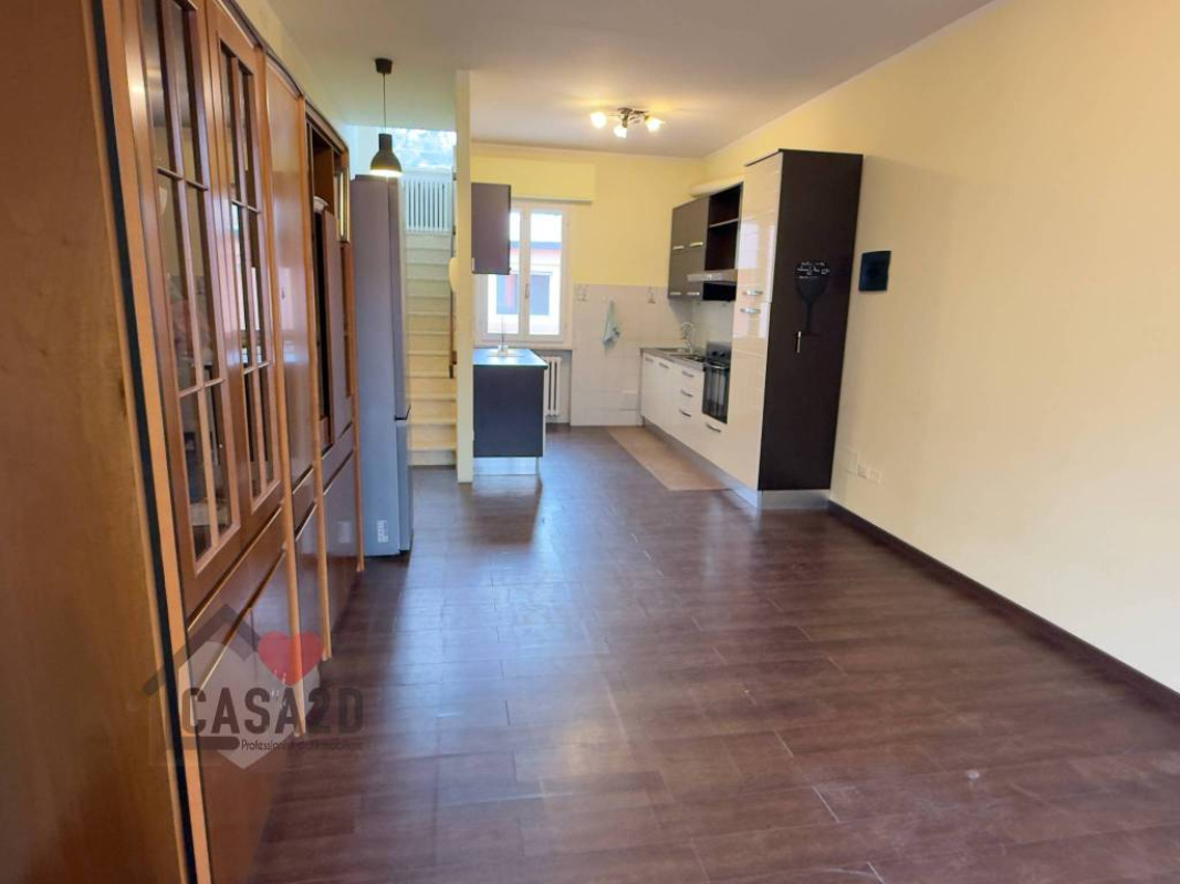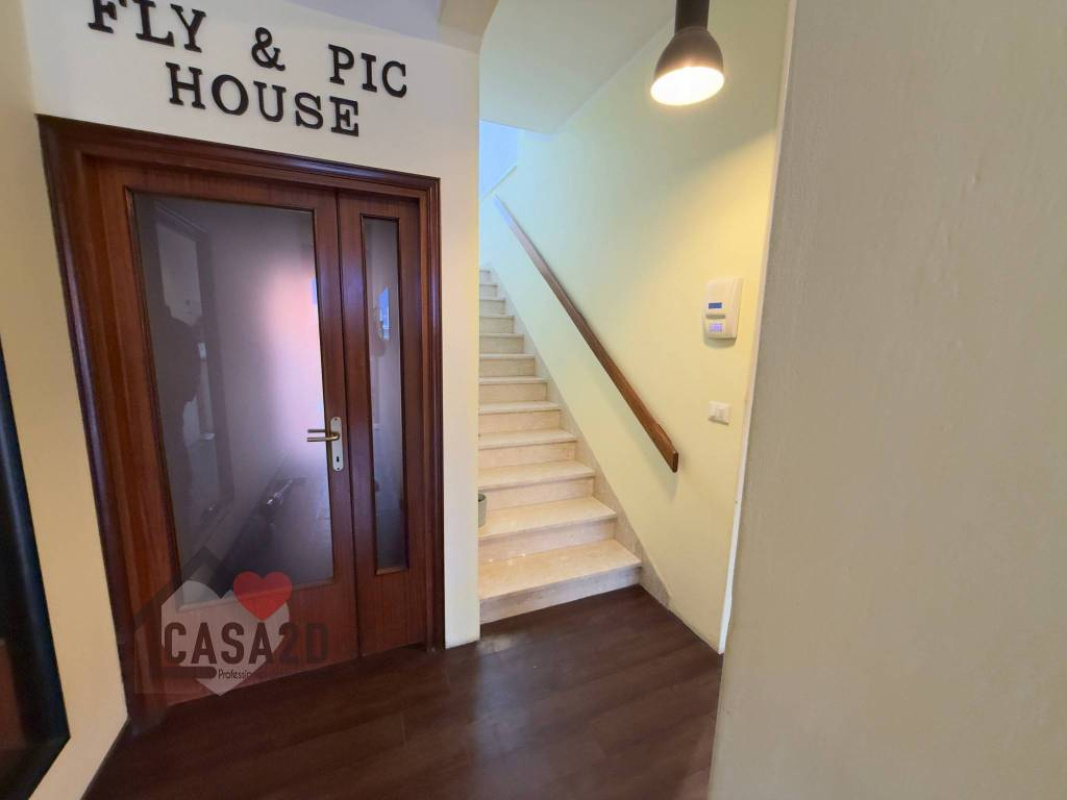 L’accesso al piano terra avviene tramite portone blindato, che conduce a un’ampia e accogliente zona giorno con cucina a vista e soggiorno.
