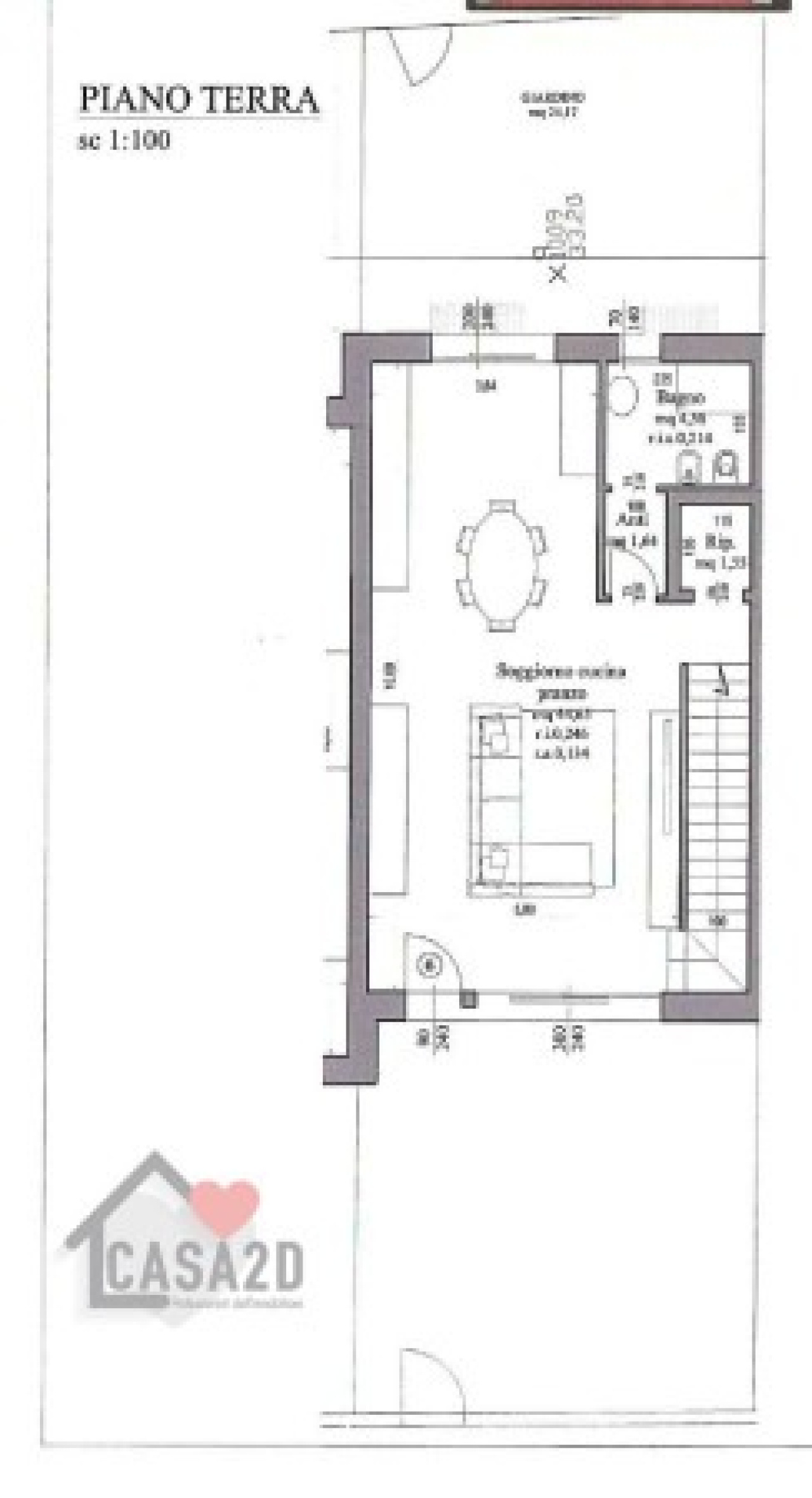 L’abitazione è così composta: Piano terra Ingresso tramite giardino frontale con accesso diretto al soggiorno con cucina a vista in open space di circa 46 mq, ambiente ampio e luminoso.