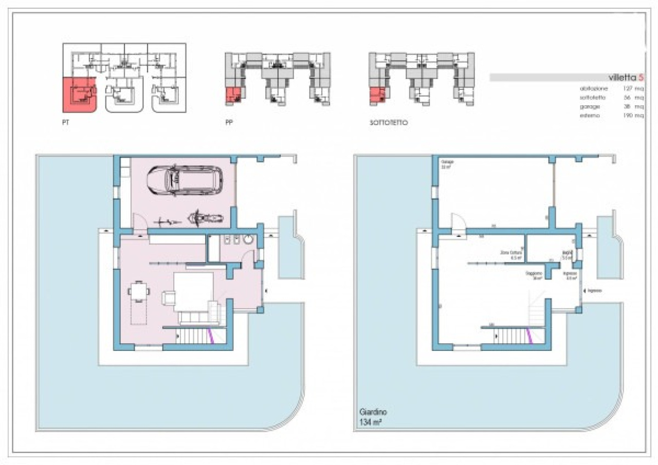 Completano questa unità, 134 mq di giardino.